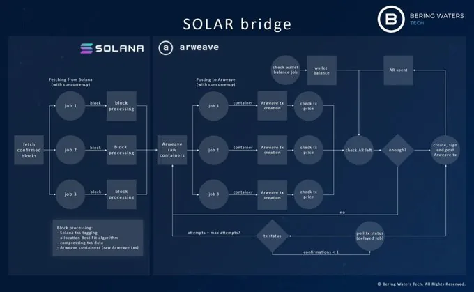 Today, Bering Waters, a leading OTC, venture, and technology group based in Hong Kong, announced the “SOLAR Bridge,” a first-of-its-kind bridge linking Solana and Arweave. The bridge is now live and was entirely designed, built, and funded as part of Bering Waters commitment to the Solana and Arweave ecosystems. This bridge is a significant development in Solana’s continued growth, making it the first blockchain to move and store its transaction history on a dedicated storage network.