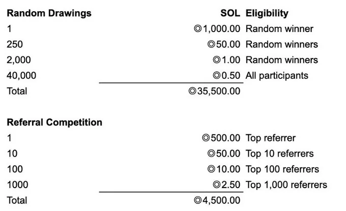 Our educational campaign allows users to be eligible for two sets of prizes: random drawings and referral competition wins. For users who place in the top 1,000 of participants, we will deliver a bonus giveaway on top of the random drawing that all users will receive.