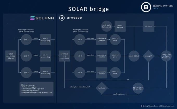 Today, Bering Waters, a leading OTC, venture, and technology group based in Hong Kong, announced the “SOLAR Bridge,” a first-of-its-kind bridge linking Solana and Arweave. The bridge is now live and was entirely designed, built, and funded as part of Bering Waters commitment to the Solana and Arweave ecosystems. This bridge is a significant development in Solana’s continued growth, making it the first blockchain to move and store its transaction history on a dedicated storage network.