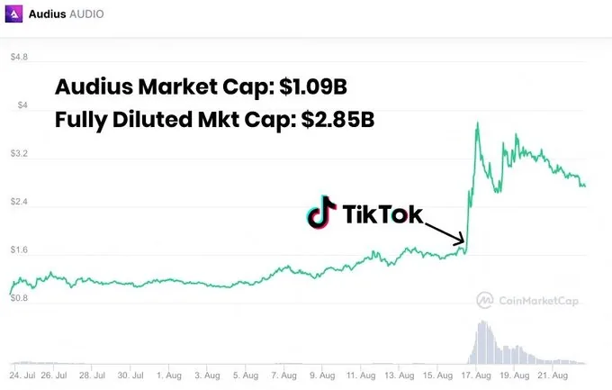 That sent the price of the $AUDIO token soaring, from $1.61 to a peak of $3.80. Its market cap currently sits above $1B.