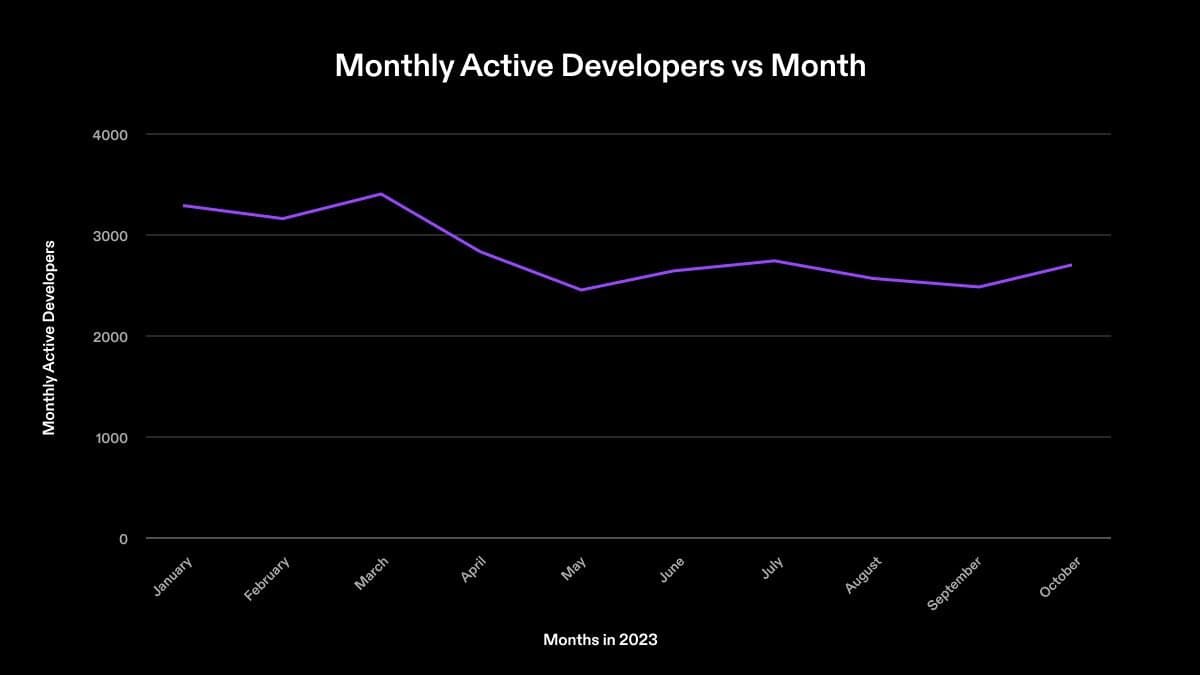 Sustaining a consistent amount of developers is an important indicator of a healthy ecosystem as it showcases the ecosystem’s ability to attract and retain new talent.