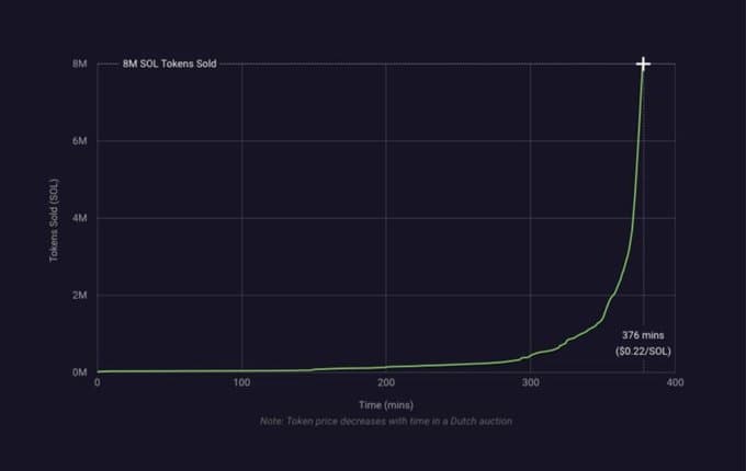 With a clearing price of $0.22, there were 1,416 registrations and 445 bids from 91 countries, successfully completing the goal of distributing tokens to the 50,000 global community members that had been waiting patiently for the Solana network to launch.