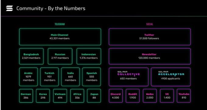 Stemming from the success of the Binance and Coinlist launches, the community has grown into an international presence that spans almost every continent and major economic zone. The Solana Foundation aims to continue to foster an intense community of SOLdiers and SOLmates that are excited about the network’s progress.