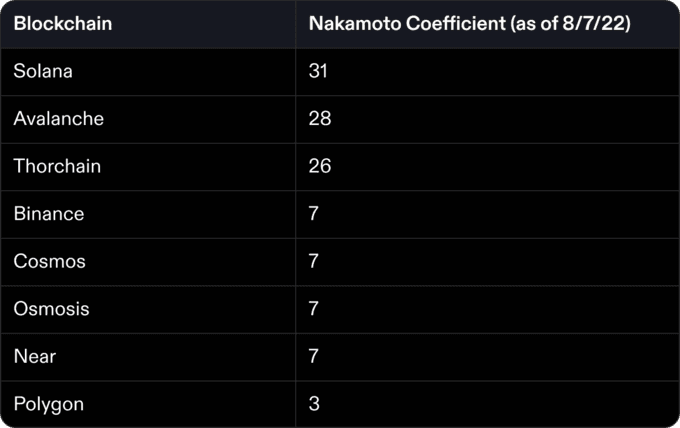 - Solana's Nakamoto Coefficient is now 31. See the chart below to see how Solana compares to other proof of stake networks.