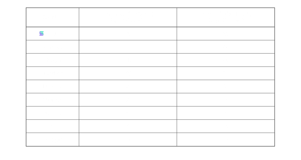 Solana’s Nakamoto Coefficient grew steadily from the chain’s launch in March 2020 through September 2022 and has remained relatively stable since then. A Nakamoto Coefficient of 31 is robust. While the Foundation would prefer to see this increase over time, seeing the number grow is not a leading indicator of the network’s decentralization, given that the Solana network is fairly distributed from the perspective of stake distribution.