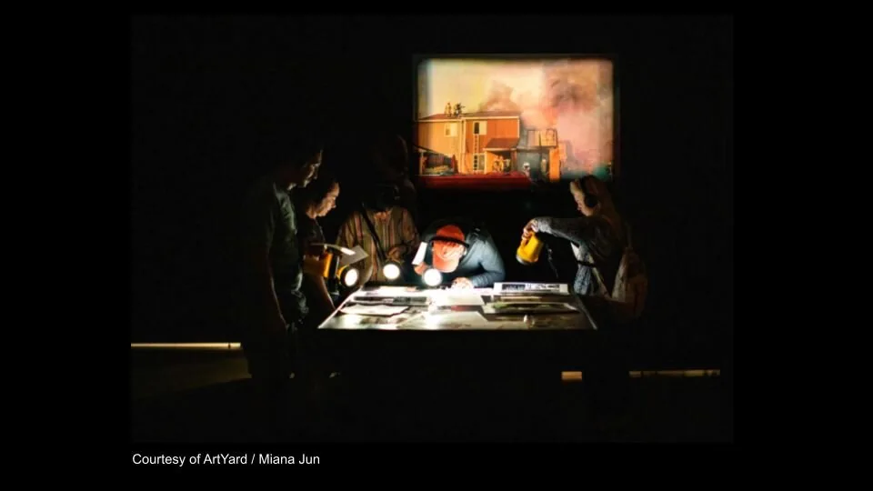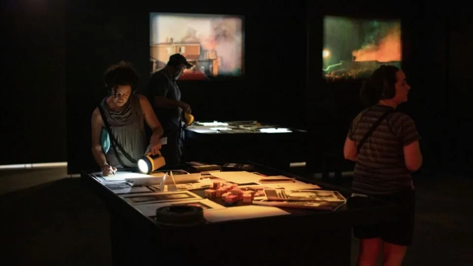 In “Where There’s Smoke,” guests move through the exhibition with flashlights and headphones to mimic the sensation of being a firefighter. Data capture and live NFT mints occur in the background, but in organic, additive ways.
