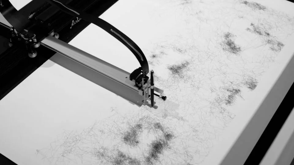 Through the flashlight devices, participants’ movements are tracked in real-time. The flashlights feed the data to an AxiDraw arm, which creates real-time generative artwork to be minted as NFTs using Solana.