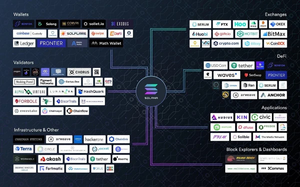 Strong partnerships and integrations are critical for the long-term success of any L1 network. The Solana ecosystem prioritized building out a full suite of features in 2020 that enabled over 100 projects to launch on Mainnet Beta. Some notable partnerships include Chainlink, Circle, Audius, Akash, Arweave, Tether, and Terra.