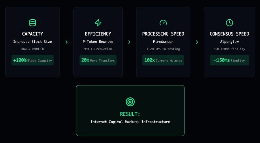 These achievements aren't accidental. They are milestones in a roadmap toward Internet Capital Markets, where every financial instrument operates with the speed and accessibility of the internet itself. The improvements highlighted here represent just a fraction of the engineering momentum across the ecosystem. Teams are advancing everything from network packet processing to market microstructure optimization, each improvement compounding to power infrastructure capable of serving global markets.