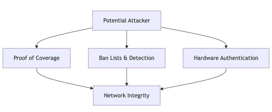 Helium's early days were the wild west. Some users spoofed locations, clustered devices, or gamed the system for rewards. The team responded with a multi-layered defense: