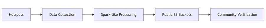 a) Proof of Coverage: Cryptographic verification system to ensure hotspots are actually where they claim to be. Hotspots self-beacon every 6 hours, though this time window may change, with each beacon being witnessed by approximately 12 other nearby hotspots. This creates a web of cryptographic proof that devices are providing real coverage in real locations.