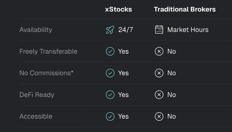 - The composability also means xStocks can be used as collateral, lent, or pooled. This unlocks new yield strategies that do not exist in legacy finance.